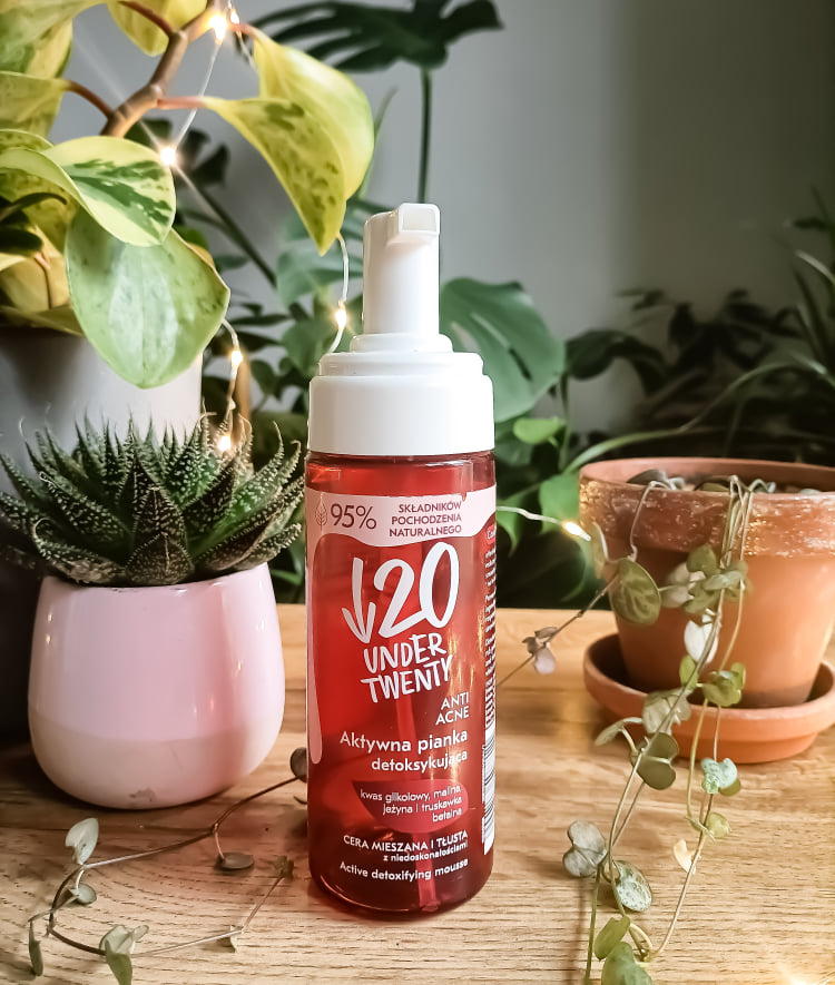 Pianka detoksykująca Under Twenty jest dedykowana cerom trądzikowym, tłustym, mieszanym. Ma detergenty średniej mocy i kwasy – glikolowy, migdałowyi glukonolakton. Działanie złuszczające łagodzą gliceryna i betaina oraz ekstrakty owocowe z truskawki, jeżyny i maliny.